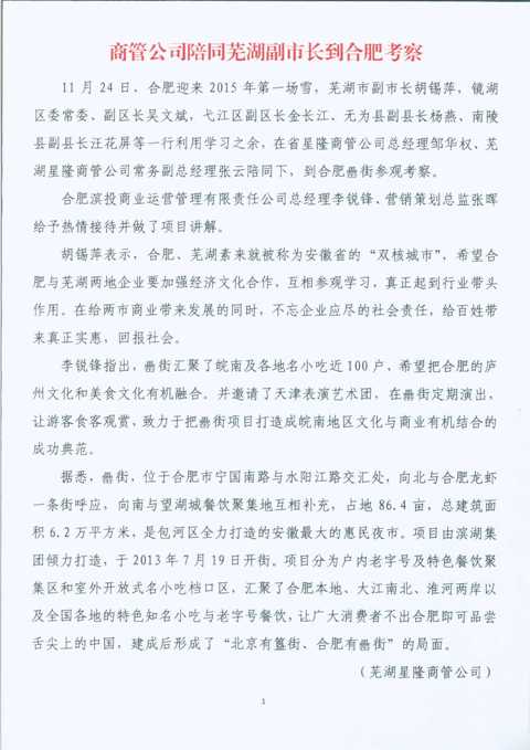 商管公司陪同蕪湖副市長(zhǎng)到合肥考察