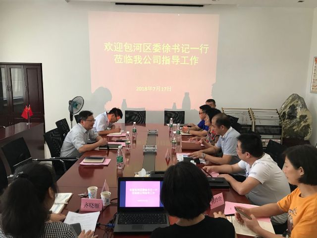 7月17日下午,合肥市包河區(qū)委副書記徐生彬一行三人蒞臨我公司調(diào)研指導(dǎo)工作,公司董事長曾玉蘭、總經(jīng)理汪冬生接待客人一行。