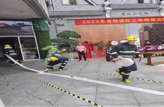 活動結束后,宣城星隆商管義務消防隊進行了現場滅火器滅火和消防水槍滅火演示展示了義務消防隊員的應急處置能力和反應速度,讓活動參與者對微型消防站的戰(zhàn)斗力有了更直觀的了解。