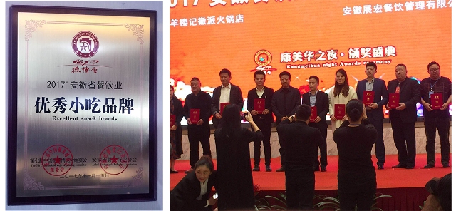 榮獲2017安徽省餐飲業(yè)優(yōu)秀小吃品牌!